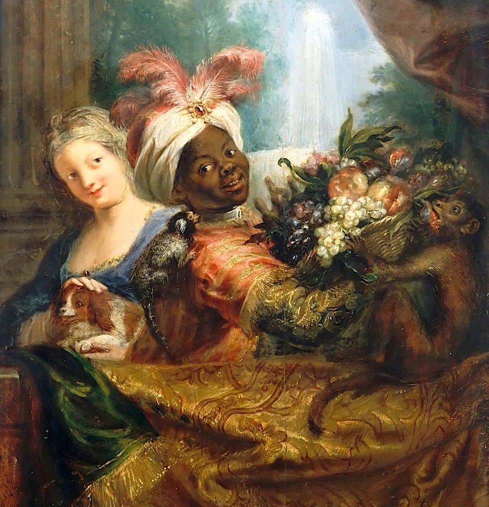 ولد مع فاكهة وفتاة مع كلب